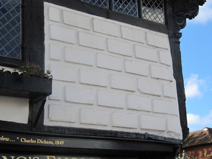 - rusticated pargeting (Image 3) – plaster work made to look like stone, may be compared with that used on Queen Elizabeth’s Guest Chamber