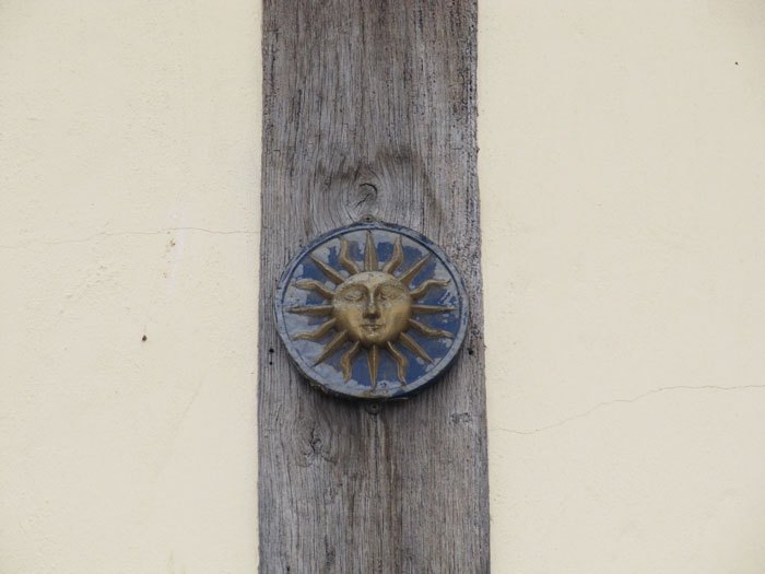 - large exposed and decorated bressumer beams (the main horizontal timbers) on first and second floors (Images 3 and 4)