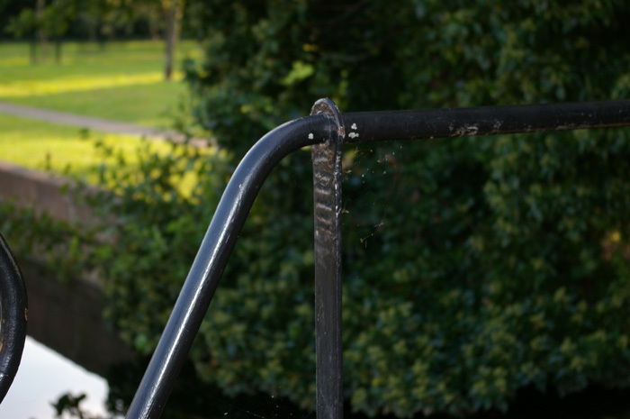 - ‘fullering marks’ (Image 9) on the weir bridge hand rails (Image 10) – left by blacksmiths who needed to extend the metal length using fullering and swaging tools