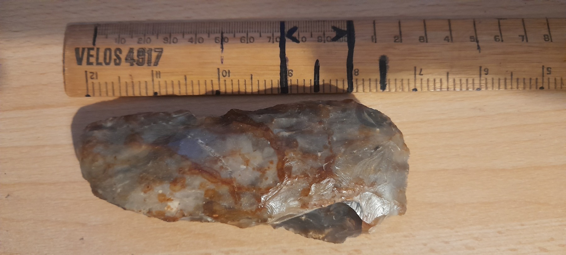 CHAS Website visitor, Howard Farmer, has sent us some pictures of a hand axe he found lying on the surface of a field in Nackington. Howard actually made this find approximately 24 years ago, but was inspired to take a fresh look at it following the recent reporting of a similar find on a National Trust property by 10-year old schoolgirl, Evie Newman. To read about her find please click here.