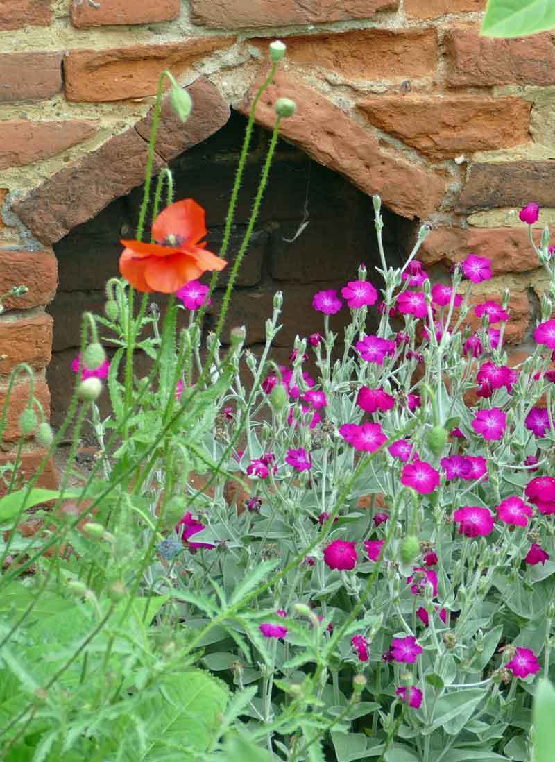 As the images show, some have been filled in (presumably to strengthen the wall); some of the niches survive; and some of these in summer can be hard to spot amongst the flowers.