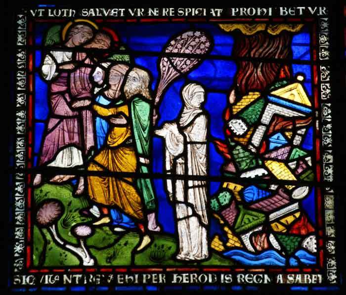 The windows are called variously, the poor man’s bible, theological windows or typological windows as they were used as a teaching medium probably mainly for the monks. There were originally 12 windows but only two remain. These are in the north choir aisle next to the St Eustace wall painting. They are perhaps the most beautiful twelfth century windows in the cathedral and can be compared favourably with the best in Europe (Image 1).
