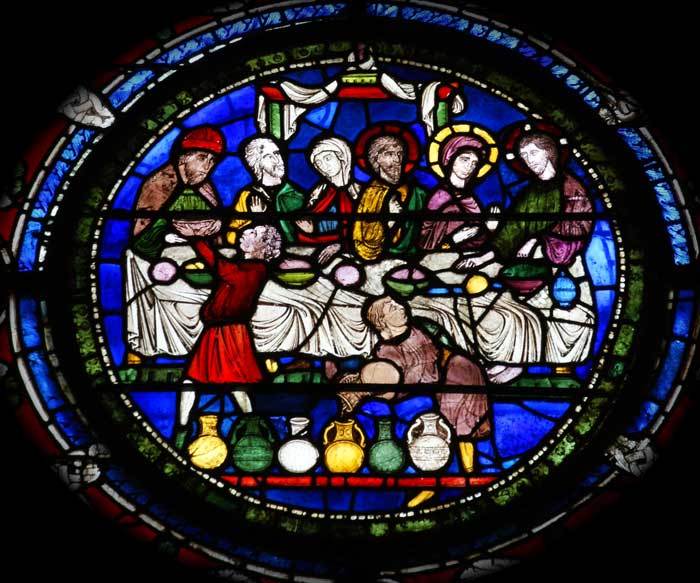 - In the right window in centre midway down, the marriage at Cana (Image 4)