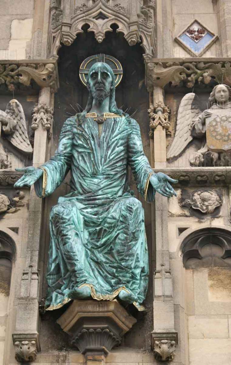 This gate is the principal entrance to the cathedral, from whose dedication to Christ it takes its name, and forms the dramatic highlight of the Buttermarket over which it stands.