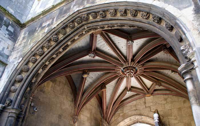 - Within the gate the bosses of the stone vault include that of Prior Goldwell and the Archbishop of York (Image 8).