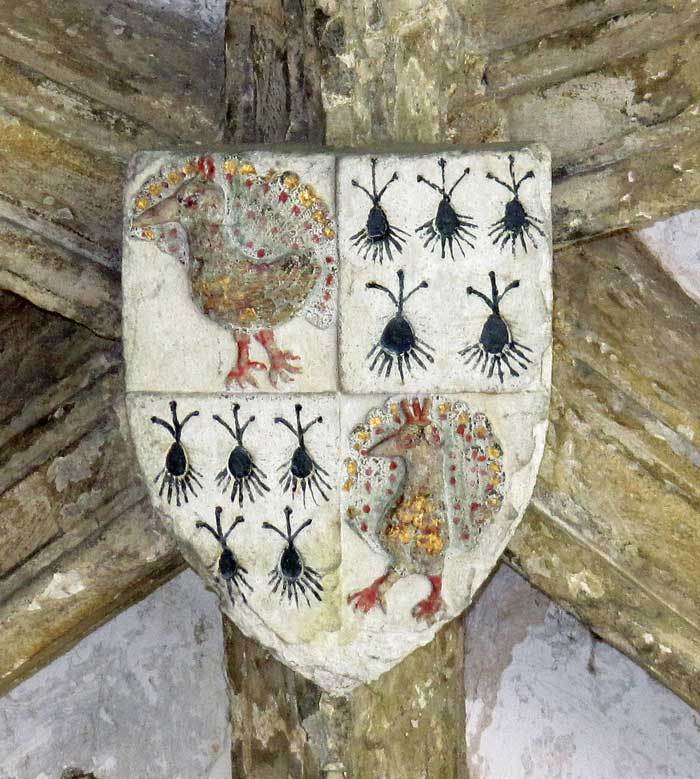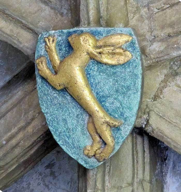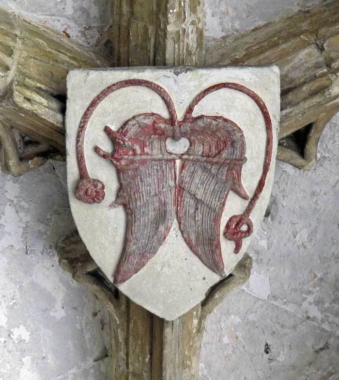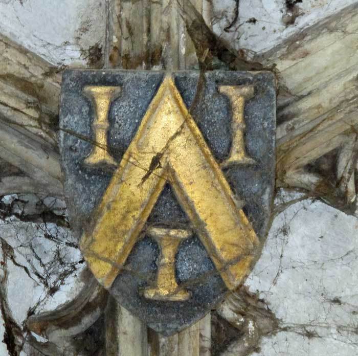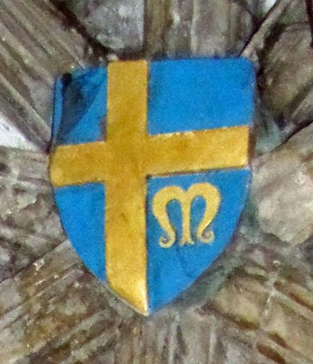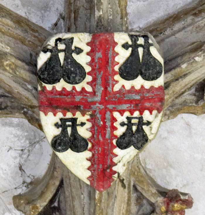 The cloister ceilings, completed in the early 1400s, contain over 800 medieval heraldic devices, representing benefactors who helped finance the building of the new cloisters. Together they form by far the largest assembly of 15th century shields and badges in England. The following notes draw attention to points of interest in just ten examples of these (we will add more later).