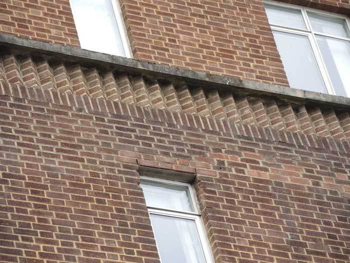 Cogging or Sawtooth Description Decorative course of projecting bricks laid diagonally. See also dentils Local examples (click to enlarge) BACK TO NOTEBOOK HOME PAGE FEATURES