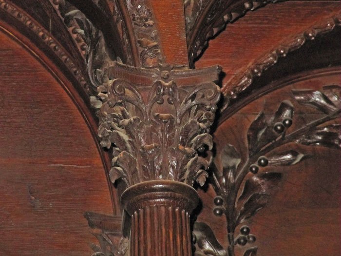Corinthian is the third of the classical Greek orders; a ringed base supports slender shafts, often fluted, topped with a capital of acanthus leaf ornamentation.