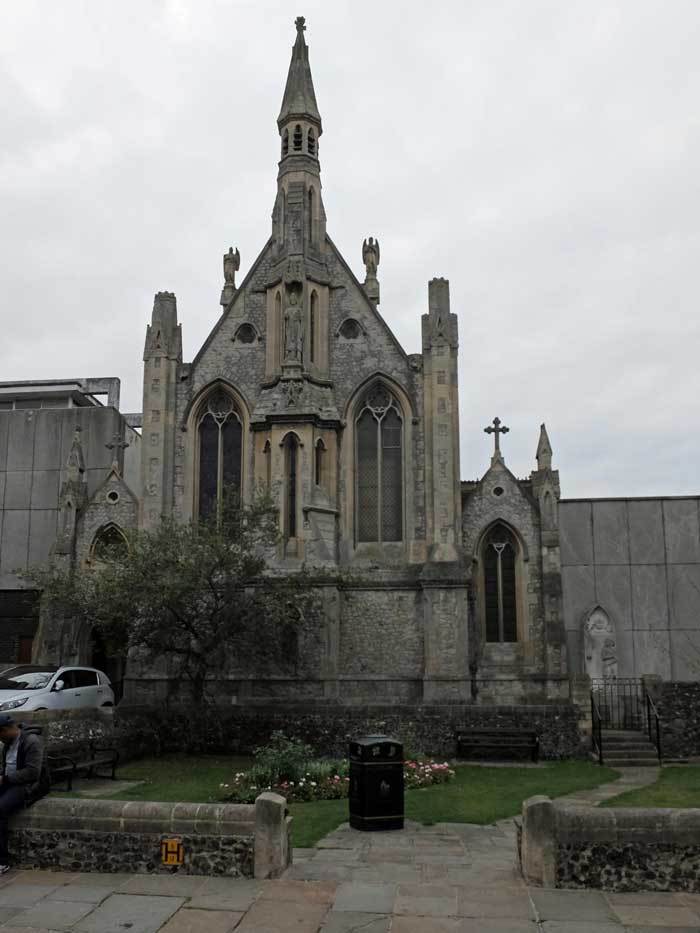 Most 19th century and later designers of Canterbury churches have chosen gothic styles – examples include All Saints in Military Road (1830s) originally dedicated to St Albans; St Gregory’s in Northolme Road (1852); St Thomas’ Roman Catholic in Burgate (1875) the city’s first Roman Catholic church since the dissolution ; and city cemetery in Westgate Court Road (1877).