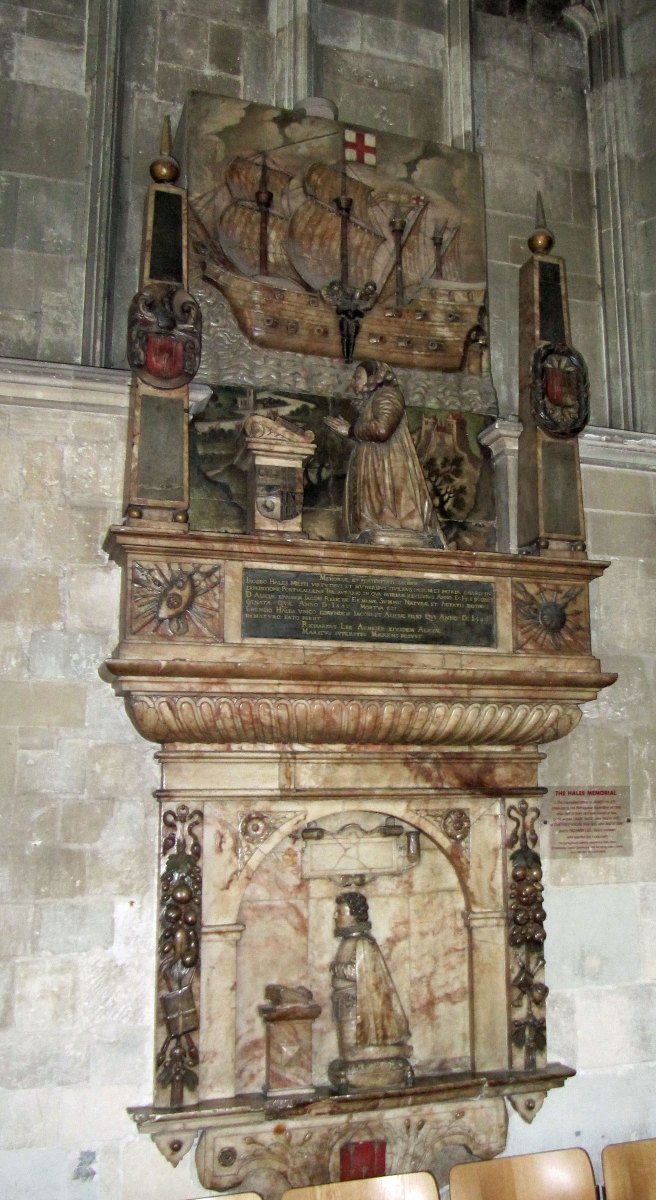 - Cheyney Hales, son of the above, survived his father by only 7 years – he appears in the lowest panel of the memorial as a young Elizabethan gallant