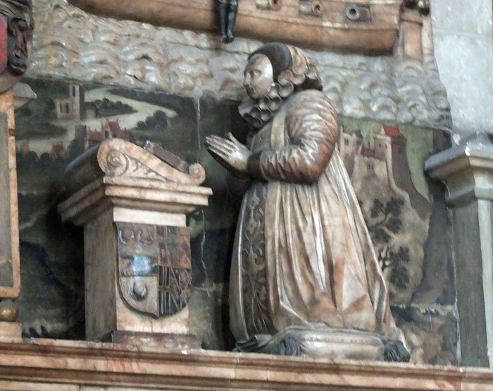 - Alice (Image 3) the wife of the grandson kneels at a priedieu or prayer desk in front of (unfortunately obscuring the painted overview of the Stour)