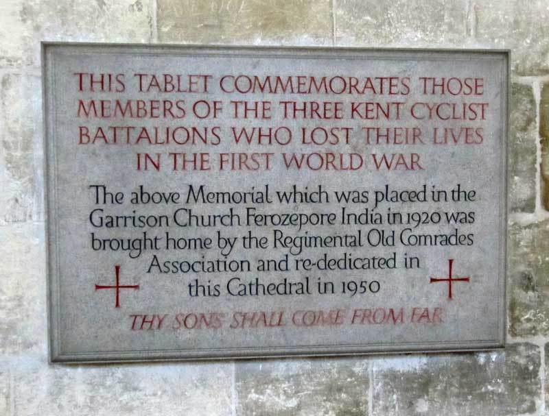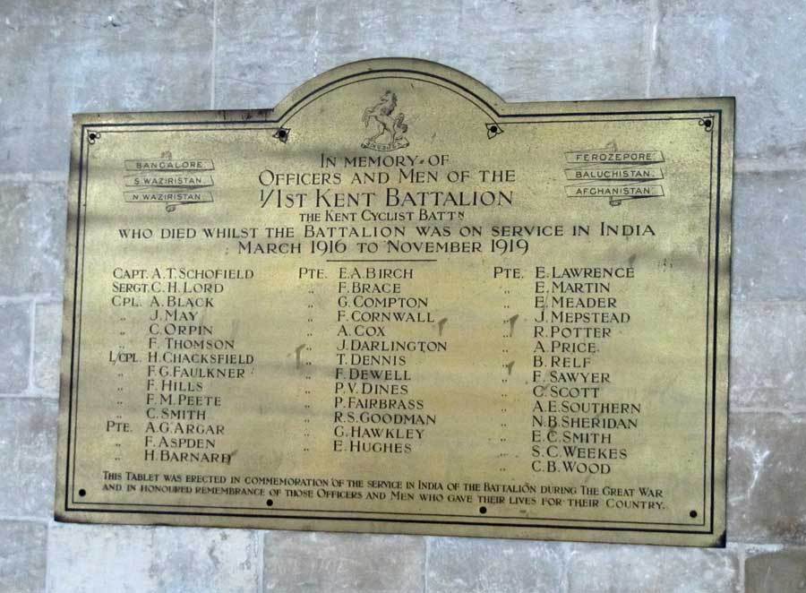 The tablet is situated below the memorial commemorating members of the battalions who lost their lives during the First World War. The stone was placed following the rededication in 1950. The tablet is possibly a variety of Hopton Wood Stone, a limestone from Derbyshire. For more on the Cyclist Batallion see related Canterbury Times article (opens as a pdf).
