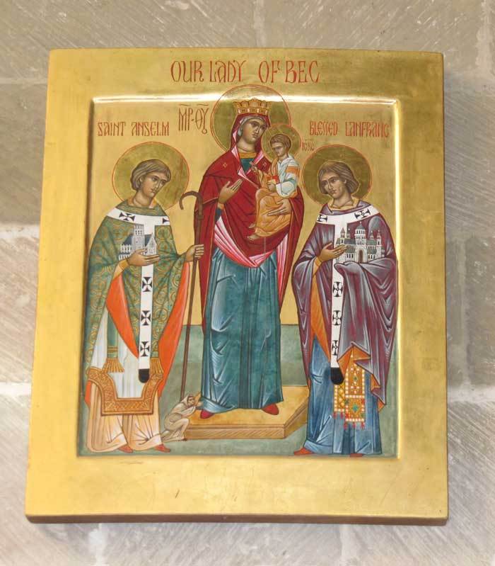 - the modern icon in St Anselm’s chapel which includes an image of Lanfranc – the icon was a gift from the Abbey of Bec given in 1999 to mark the 50th anniversary of the re-founding of the abbey (Image 3)