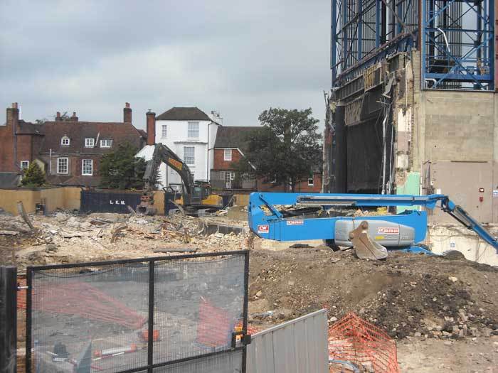 - the unavoidable block of the fly tower which rises to 36 metres – according to the architects (Keith Williams) this has been given a cap to emphasise that it ‘pays obeisance’ to the cathedral opposite