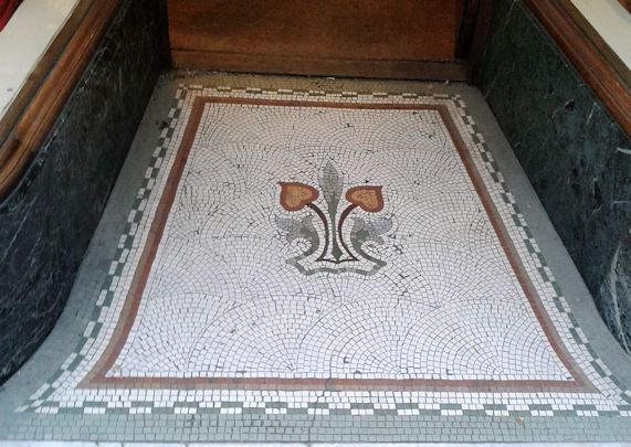 Mosaics are wall or floor surfaces made from small pieces of tiles, stones, glass or other materials in pictorial or abstract patterns. The earliest mosaics in Canterbury are at the Roman Museum in Butchery Lane on the site of a Roman townhouse where a Roman pavement and corridor panels were discovered after the Second World War bombings. The museum has put its own modern mosaic on the street entrance and there are a number of other advertising and decorative entrance mosaics in the city.