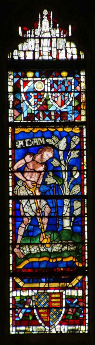 - In the centre of the lowest register is Adam delving, perhaps the earliest glass in the Cathedral being made in about 1176 (Image 5).