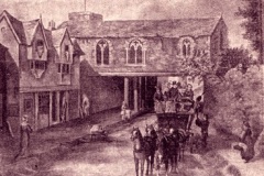 From c.1300 the church of St. Mary Northgate was incorporated above the gate, which was later developed to allow both horse carriage and pedestrian access (Image 1). The church was rebuilt in 1773 and again in 1830 when the gate was demolished , the only visible sign being a commemorative Cozen’s paving slab. The architecture is undistinguished, utilising Egyptian style obelisks and inverted crosses above neo Gothic windows at the East and with a square brick tower at the West. The church was deconsecrated in 1912 and is now owned by King’s School.