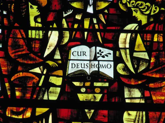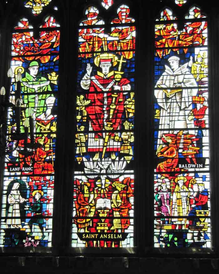 - the modern window in Anselm’s chapel by H J Stammers – it includes the book Cur deus homo, a treatise by Anselm on incarnation (Image 2)