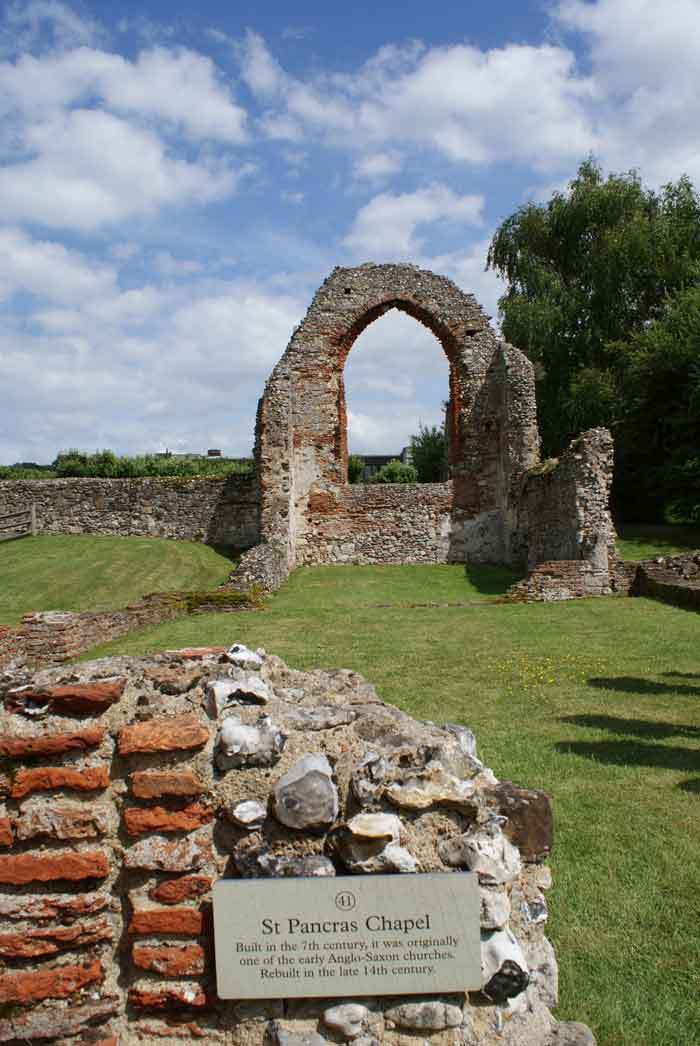 The abbey was founded around AD 598 as part of St Augustine’s mission. Its original function was to house the monks who came with Augustine and to provide a burial place for the kings of Kent and the Archbishops of Canterbury, which today are the earliest named graves in the country. Little evidence remains of the Saxon monastic buildings, but there were three churches built in a line from west to east, St Peter and St Paul, St. Mary and St Pancras Chapel. The monastery was enlarged and dedicated to St Augustine in 978 by St Dunstan. In the 11th century Archbishop Wulfric joined the first two churches together with an octagonal structure, probably never completed.