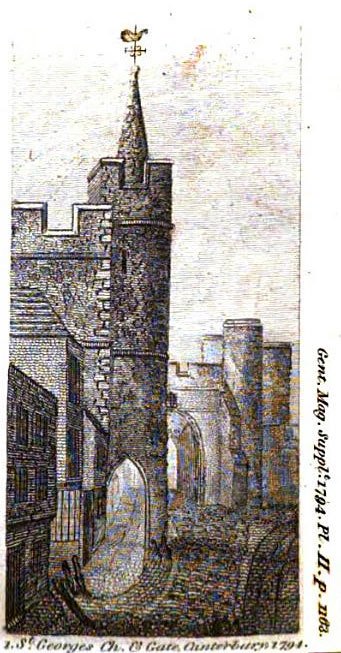 In the mid sixteenth century the upper part was used as a prison, and later as a storehouse. In 1648 during he Civil War the doors were burnt by Parliamentary troops. They were replaced in 1660 by Archbishop Juxon, at the same time as those for Westgate, Burgate and Christchurch Gates.