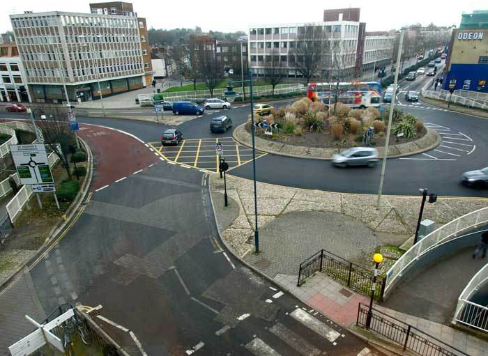 - The current roundabout and the dark grey paving stones marking the site of the Gate showing that the access was no wider than a medieval cart and demonstrating why it was demolished (Images 6-7).