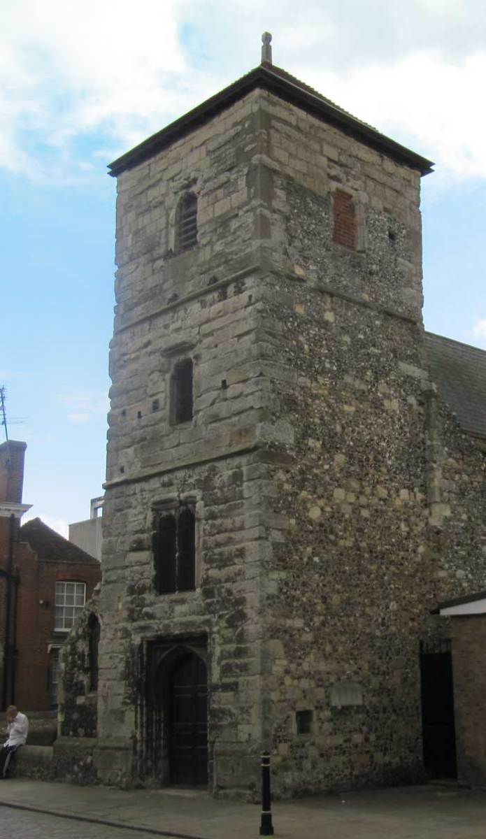 All that remains of the parish church of St Mary Magdalen is the tower in Burgate standing close to the city’s Roman Catholic church, the lower courses of the original church now forming a low garden wall (Image 1). The church had 12th century origins, and the surviving perpendicular gothic tower was built around 1500. The writer Richard Harris Barham was baptised here in 1788. The church closed for worship in 1866 and demolition of all but the tower took place in 1871. The parish united with that of St Georges – but war damage to that church has left us with two old parishes having no church but two towers between them. The font was removed to River (near Dover), the arcades went to St George’s, and the bells seem to have left for Madagascar!