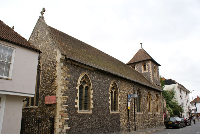 The church may possibly stand on the site of a Roman cemetery chapel, as it is situated just outside the Burgate, close to where Roman burials have been excavated. The original very early 13th century church consisted of only part of the current north aisle, which still contains the original piscina for washing the sacred vessels in the northern wall. Later in the same century the first tower was built and the southern wall broken through to allow the current nave added, although originally as a southern aisle. Later still the first recorded vicar Hamo Doge created the chancel where the organ now stands. In the 14th century the chancel was transferred to an extension to southern aisle which then became the nave. It united with St Martin’s church in 1681.