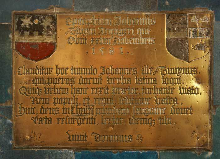 - The memorial to John Twynne (1501 – 1581), the first headmaster of King’s School, on its re-establishment following the dissolution of the monasteries. He became Mayor of Canterbury in 1553 and later Member of Parliament for the city. He was sent to the Tower for some of his beliefs and eventually lost his positions when Elizabeth I came to the throne (Image 5).