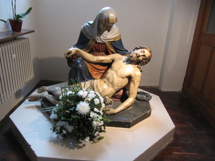 - The large pieta which came to the church from Hales chapel, purchased for 10 guineas by the parish priest in 1928 when the house was sold by the Jesuits (Image 4)