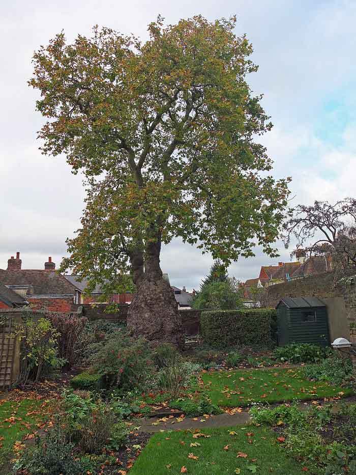 We have spotted several impressive examples of Platanus orientalis (Oriental Plane) in the city. They are readily identifiable by the bulbous distortions in the bark of their trunks. These appear at first site to be diseased, but advice from staff at Royal Botanic Gardens, Kew, suggests this is not the case – this is simply the way healthy specimens grow (click on advice button below for details). Our seven can be seen: