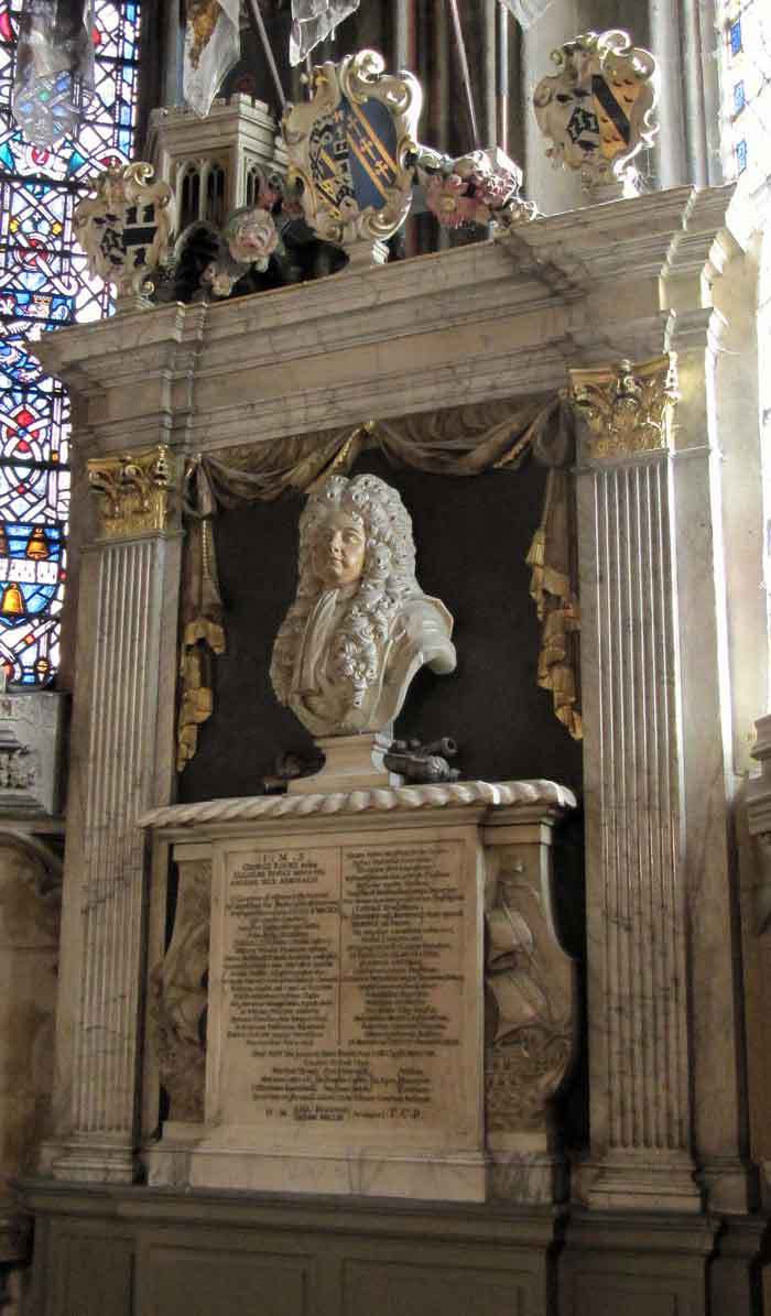 - at the south east corner of the chapel stands the heavily bewigged bust of Admiral Sir George Rooke (Image 6) (died in 1708 and buried in St Paul’s church Canterbury) – he achieved fame through the capture of Gibraltar for England in 1703