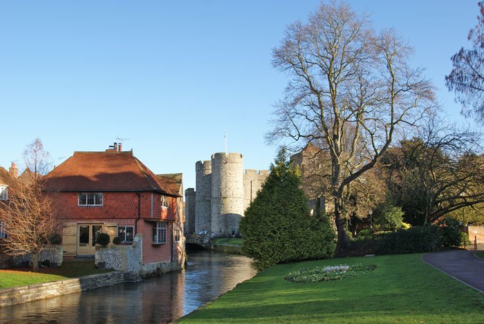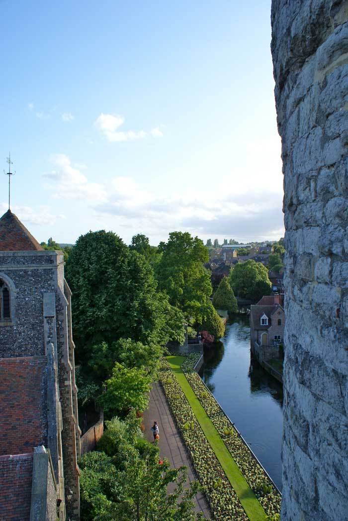 Most of these gardens were originally submerged under the River Stour along the edge of which ran the Roman city wall. At the western end was London Gate, through which ran Watling Street on the route to London. The wall was was substantially rebuilt in flint between 1378 and 1402, including the bastion which is now Tower House. The wall between Westgate and the Castle was demolished in 1647 following riots in Canterbury during the English civil war, leading to the surrender of the city to the Parliamentarians in 1648. The bastion was probably converted to a dwelling around 1850 and two wings added in 1870. In 1886 it was bought by Stephen Williamson, owner of the local Tannery, who later acquired the gardens and whose family lived there until 1935. In 1936 his grandson Stephen and wife Catherine Williamson gave the house and gardens to the city under a deed which required the space to be preserved as a public space for the benefit of Canterbury residents. Catherine was a city councillor and later became the city’s first woman mayor from 1938-40. She was responsible for demolishing the Victorian wings of the building and laying out the 11 acre gardens as a riverside park and walk. The house is now used as the Mayor’s parlour.