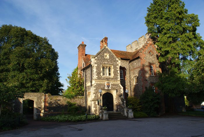 - The arms of city of Canterbury over the entrance to Tower house with a leopard denoting its royal connections, three black choughs from the arms of Archbishop Thomas Becket and the motto “Mother of England” in Latin (Image 7).