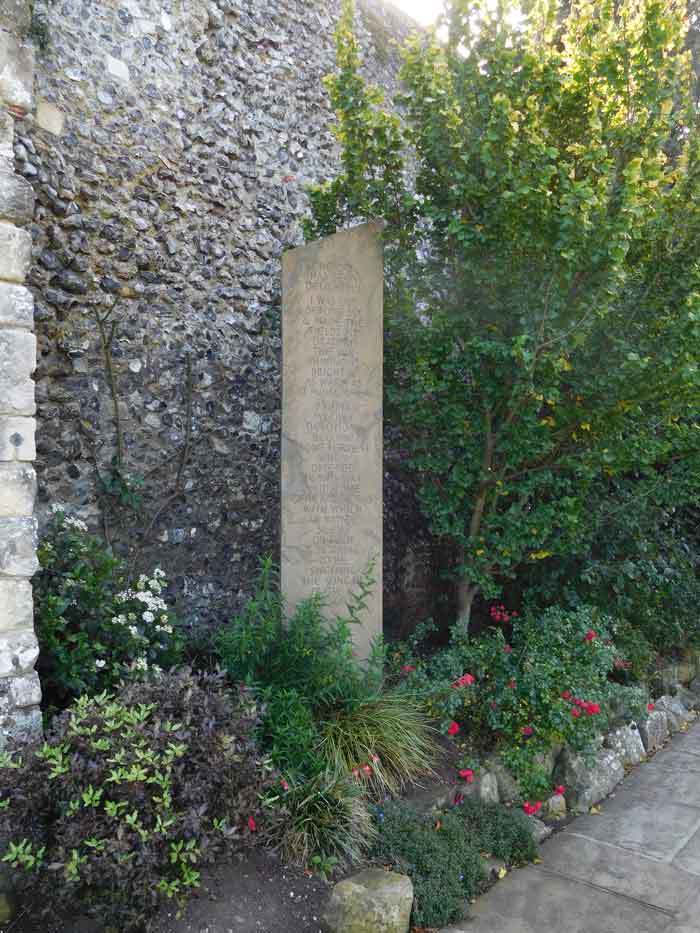 The sculpture is by Richard Kindersley and is entitled Art and Memory. Kindersley learned much of his craft in the workshop of his father, David, who some 35 years before had carved the wall tablet to Alfred Deller in the South Choir Aisle (insert link). Richard continued to study typeface and sculpture at Cambridge School of Art before he set up his own London studio in 1970.