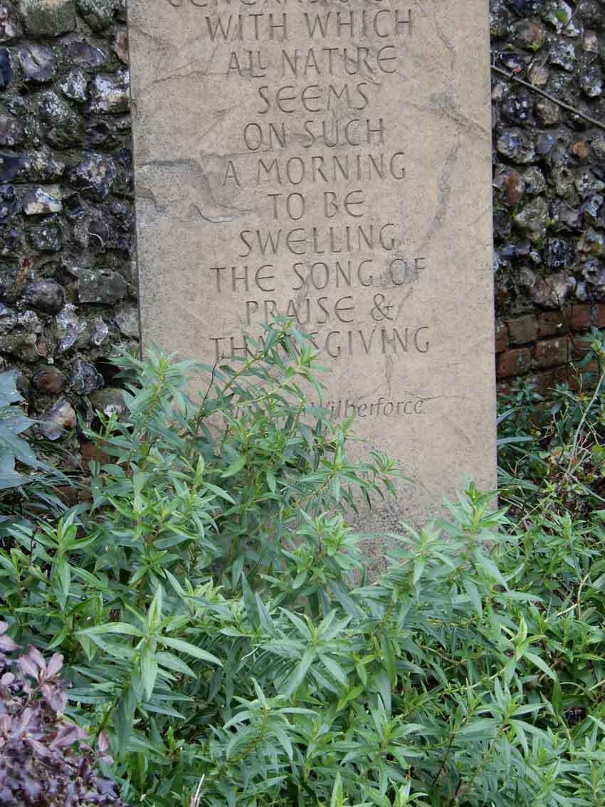 This stone is located in the Memorial Garden. The words are attributable to William Wilberforce (1759-1833) the, politician, philanthropist and devout Christian who tirelessly campaigned for the abolition of the British slave trade. The quotation reads: